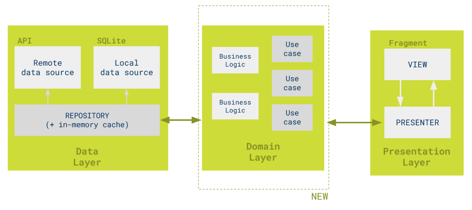 다음은 , 구글의 Clean Architecture + MVP에 관련된 그림이다.