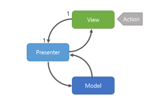 즉, View와 Model은 서로를 알지 못하며 Presenter를 통해 상호작용한다.
