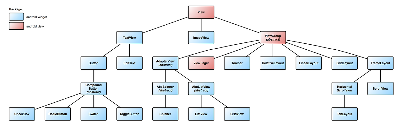 그림과 코드에서 보이는 것과 같이, 최상단에 View가 있으며, 모든 UI 관련 컴포넌트는 결국 View를 상속받아 구현된다.