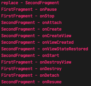 * 기존 replace와 달리 FirstFragment는 backstack으로 남아있으므로 view까지만 소멸됨. Fragment 자체는 소멸 안됨.