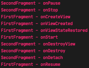 * backstack에 의해 view만 소멸되어있는 상태였던 FirstFragment가 다시 top-level에 올라옴으로써 view 재생성됨