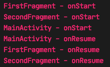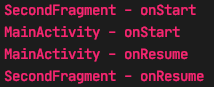 First, Second Fragment, MainActivity onStart -> onResume