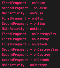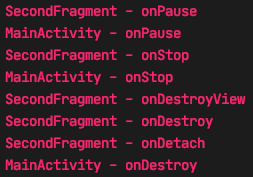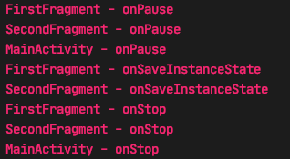 First, Second Fragment, MainActivity onPause -> onStop