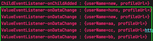 ValueEventListener의 경우는 추가된 child를 포함하여 모든 child를 모두 읽어온다.