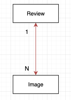 다음과 같이 하나의 Review에 대해 N개의 Image를 가지는 1:N 연관관계로 구성되어 있다.